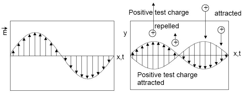 charge is subjected to. Along the path of the wave, the