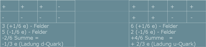 -1/3 und +2/3 der Elementarladung und die 3 zusätzlichen