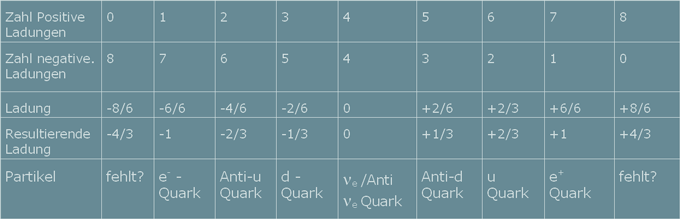 neutralen, +1 oder - 1 geladenen Quarks, die erst über Photonenemission