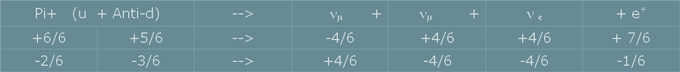 Neutron, Myon und Pion . Man beachte die Notation der entstehenden